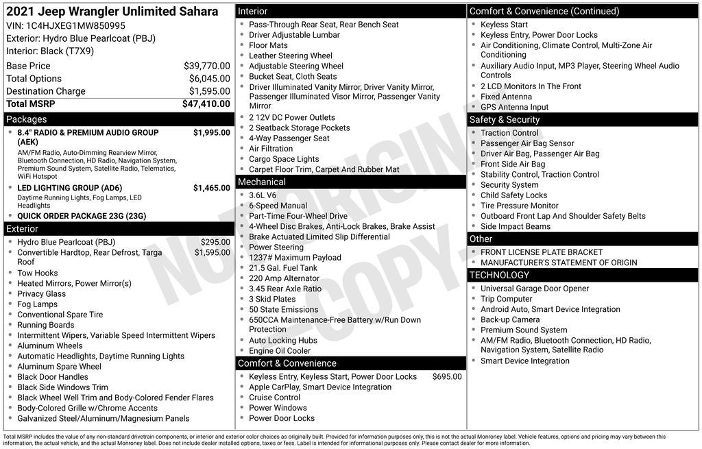 This 2021 Jeep Wrangler Unlimited Sahara is a true icon of adventure and capability. With its uncompromising performance, exceptional features, and timeless design, it's the perfect companion for those who seek to explore the great outdoors. Visit our showroom today and experience the thrill of the Wrangler Unlimited Sahara for yourself.